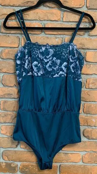 Dark green color Sheer lace upper section, solid lower Adjustable straps Square neckline Very good... Show more