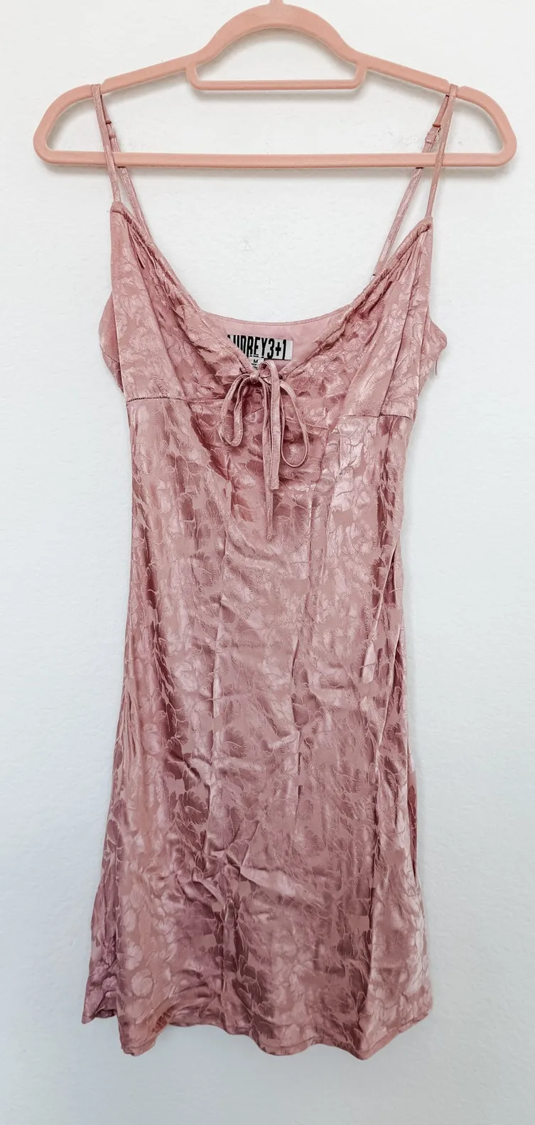 Audrey 3+1 Babydoll Slip Mini Dress Crushed Satin Rose Pink Size M Y2K Coquette Condition: Excellen... Show more
