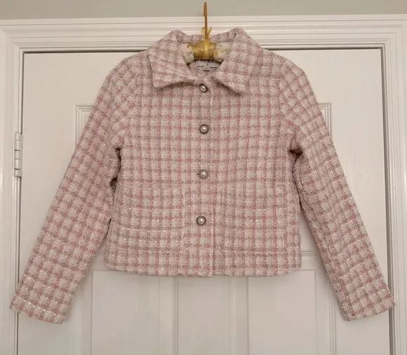 Aura Tweed Pink Plaid Pearl Cropped Blazer Womens Sz S Prep Career Elle Woods - $15 - From piper