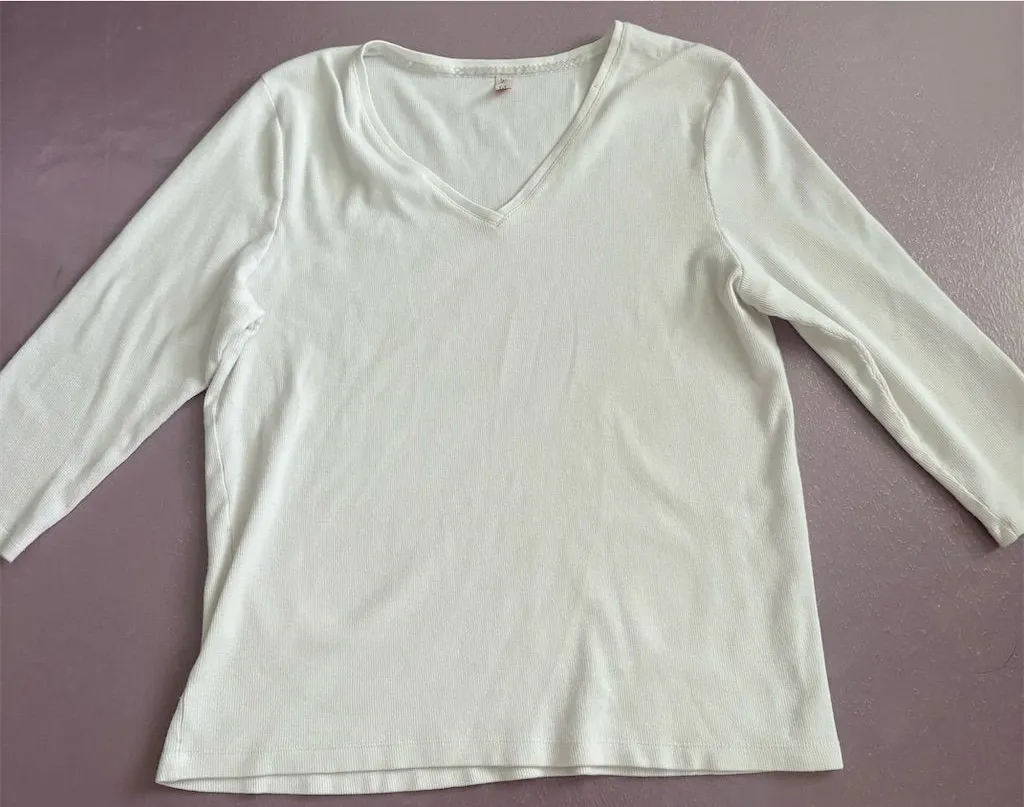 Discover the perfect blend of comfort and style with the Austin Clothing Co. Women's V-Neck T-Shirt. This versatile white tee, crafted from a soft cotton and Lycra blend, offers a flattering regular fit that feels as good as it looks. The 3/4 sleeves and V-neckline add a touch of elegance, making it ideal for any casual occasion. Whether you're out for a coffee date or enjoying a relaxed day at home, this T-shirt is your go-to choice. Plus, it's machine washable for easy care. This item is pre-owned, offering great value and style. Brand: Austin Clothing Co. Size: XL Color: White Type: T-Shirt Department: Women Neckline: V-Neck Sleeve length: 3/4 Sleeve Material: Cotton, Lycra