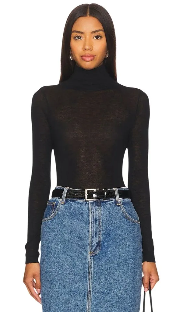 Our sweater is slightly sheer with mock-neck and ribbed details. Made from tissue-weight cashmere. Our classic second skin sheer mock - an understated yet elegant staple. 100% cashmere Dry clean only Pull-on styling The garment is made with a semi-sheer fabric, and undergarments can show through Revolve Style No. AUTU-WS344 Manufacturer Style No. RFC13025 Color: Black MSRP:$210.00 Features: • Totally Sold out on Revolve! Size: Womens M Condition: New With Tags Tags: travel, classic, preppy, timeless, eco, sustainable, boho, preppy, professional, work, office, classy, classic, denim, coat, vintage, blazer, premium, jacket, workwear, everyday, madewell, stretchable, preppy, nordstrom, casual, basics, essentials, winter, warm, fall, autumn, neutral, wool, light weight, thin,