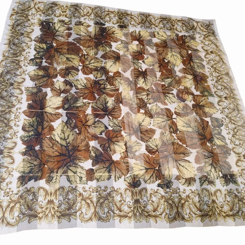 This vintage tablecloth features a stunning autumn leaf design framed by intricate gold patterns. Its sheer fabric adds a touch of elegance, ideal for antique-inspired decor or collecting. • Measures approximately 34x34 inches • Lightweight, sheer fabric • Square shape design • Ornate gold leaf border • Autumn leaf motif in earthy tones No visible condition flaws. Measurements: 34x34 inches. ~Buyer Please Note ~ All items are professionally cleaned and ozone-sanitized before shipping, which may leave a light temporary scent. Most listings are pre-owned — Please feel free to request any additional details before purchasing. I respond quickly to all inquiries. Reasonable offers are always welcome.