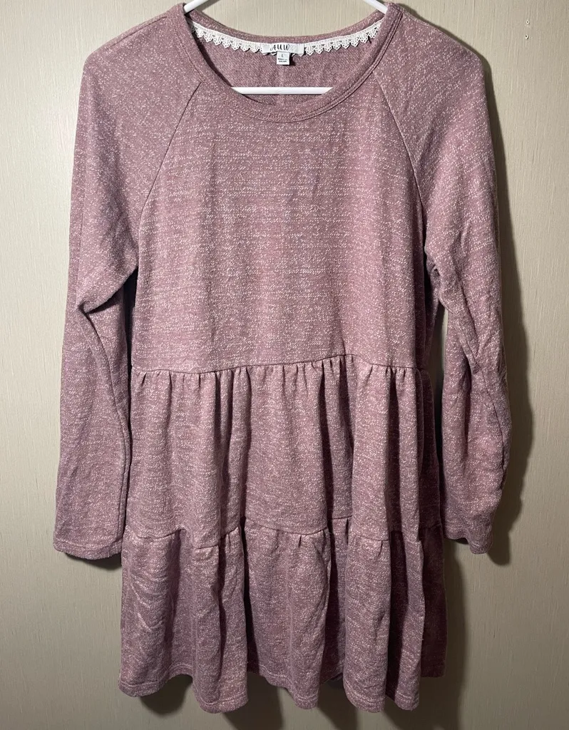 AUW Pink purple mauve Long Sleeve tunic Dress tiered large heathered - $21 - From Angelica