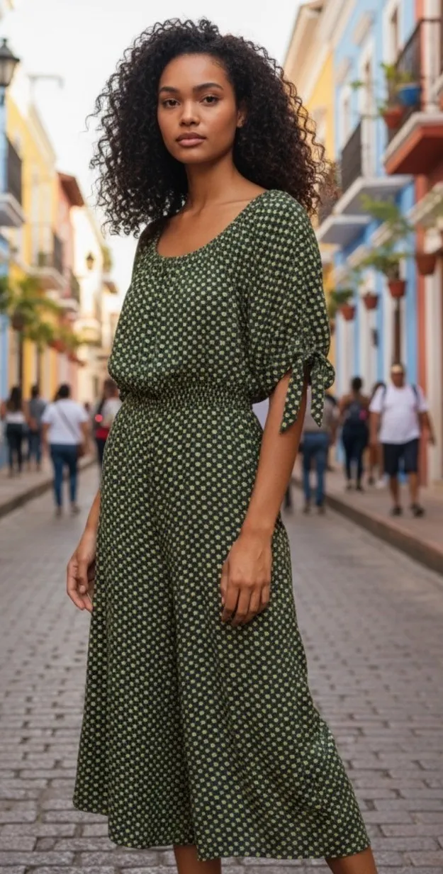 The AUW Women's Olive Green Gold Floral Print Wide Leg Crop Jumpsuit in Size 3X is a stylish and com... Show more