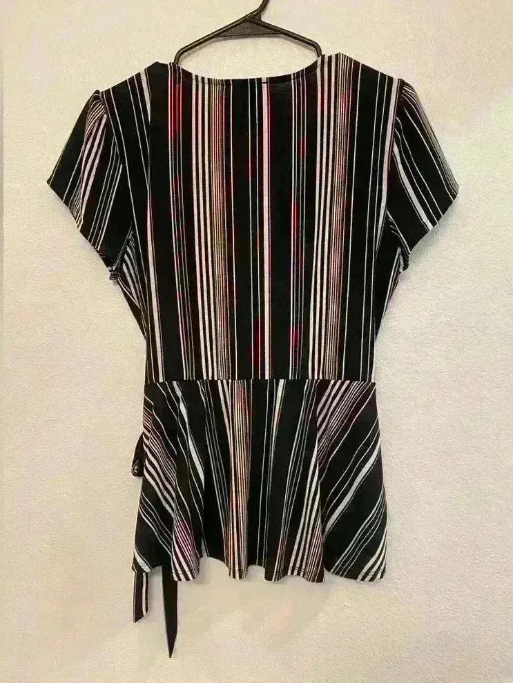 AUW Women’s Y2K V-neck Wrap Around‎ Black and White Striped Blouse Size M Size M - $7 - From Trendy