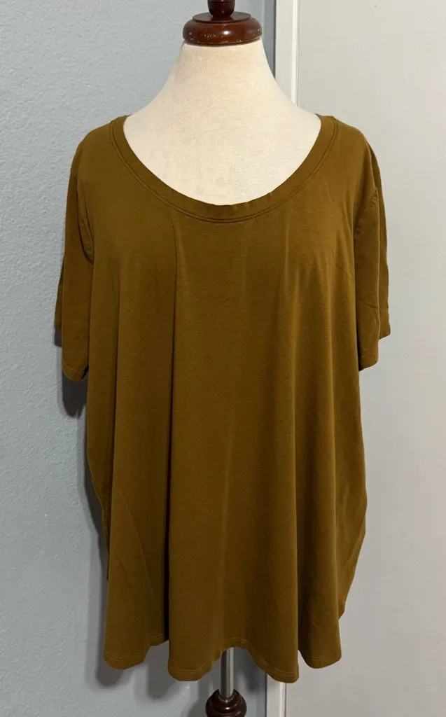 Chic and comfortable short sleeve top. Perfect for casual outings. Preowned - Good condition Brand: Ava & Viv Size: 3X Color: Mustard Made in Indonesia Estimated Measurements: Armpit to armpit 25.5 in Lenght from shoulder 28.5in Short sleeve 8.5in Z-L