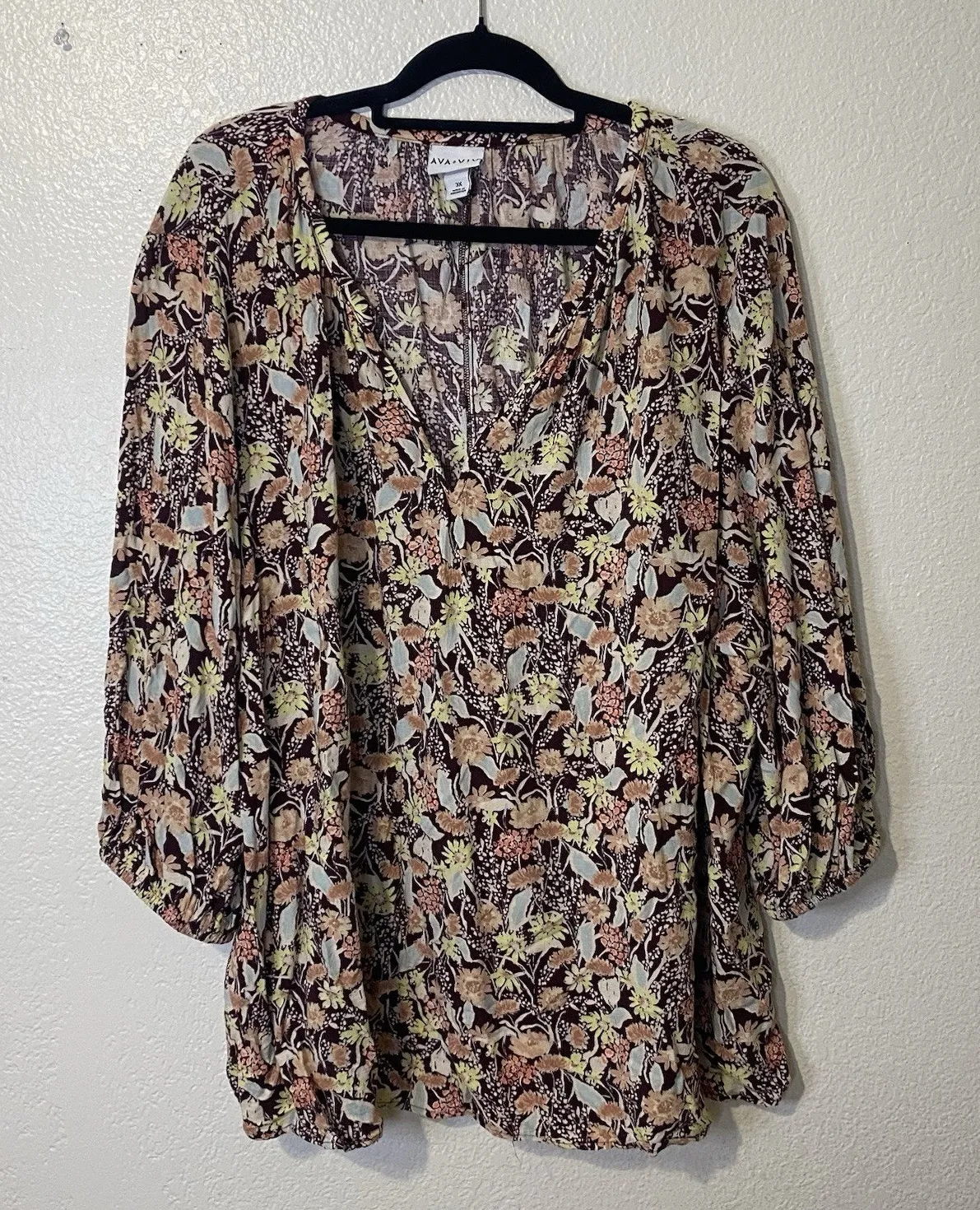 AVA & VIV Top Size 3X Multicolor Floral V Neck 100% Rayon 3/4 Sleeve Blouse - $18 - From Erica