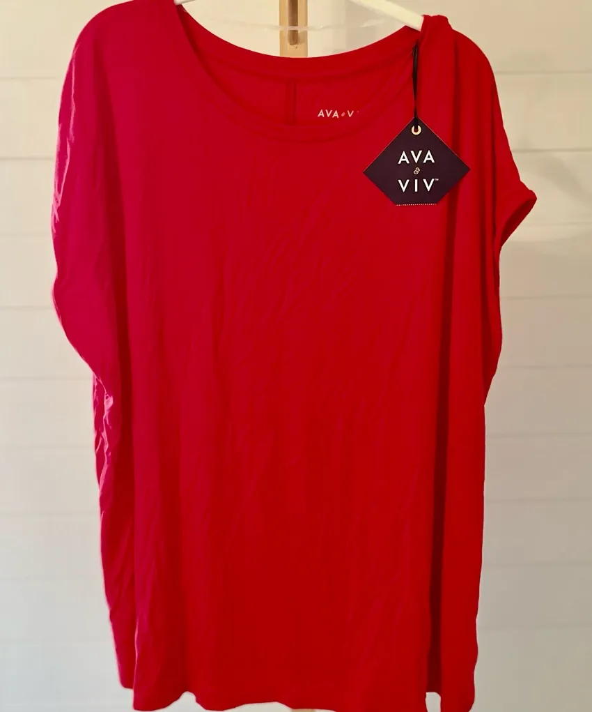 Ava & Viv Women's Short Sleeve T-Shirt in Red - Size 1X Elevate your casual wardrobe with the Ava... Show more