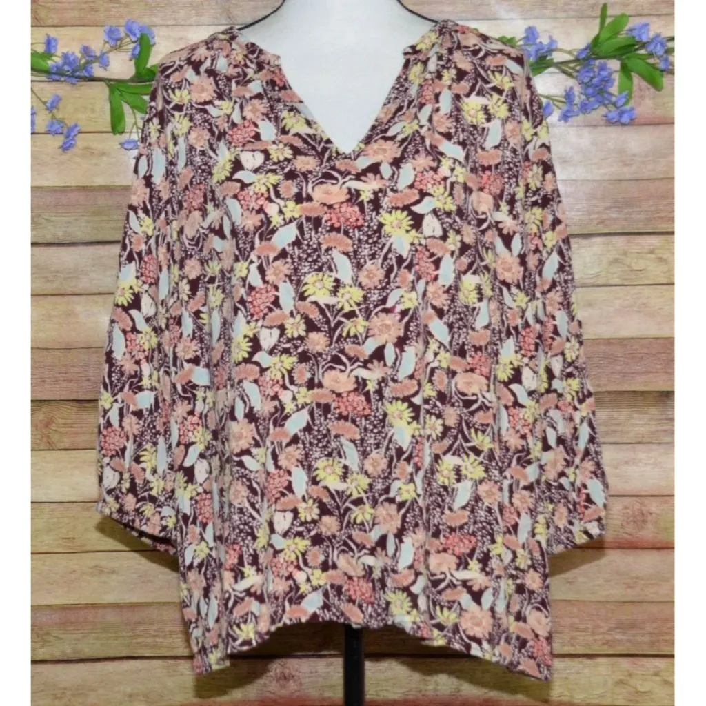 Dark red V-neck blouse for any casual occasion. Features a beautiful floral fall leaves pattern with 3/4 sleeves, perfect for layering. Comfortable and stylish, this plus size top is made from soft rayon fabric. • Dark red color • V-neck design • Floral fall leaves pattern • 3/4 sleeves • Plus size 1X • Casual style • Soft rayon fabric Location: Section 2 Please SEE measurements of the clothing items to ensure fit! Measurements are in the last photo. To check measurements, measures a well fitting garment laying flat unstretched. We double the measurement for bust/chest/waist/hip/thigh and leg opening. Length is measured from shoulder to hem. Inseams are measured along the inseam. When you see TWO measurements for one area it is because the item has stretch and one is laying flat and the other is stretched. 🙂 Size: Womens 1X Condition: Pre-Owned Like New Excellent Condition Thanks for looking at my listing. I have been selling online for several years and take pride in the items that I am listing and feel they will make a great addition to someone's wardrobe or home. All the items I am listing have been checked by several people and do not have any flaws such as holes, rips, or stains. Any issues a piece may have will be disclosed and will be included in the photos. Happy Shopping!