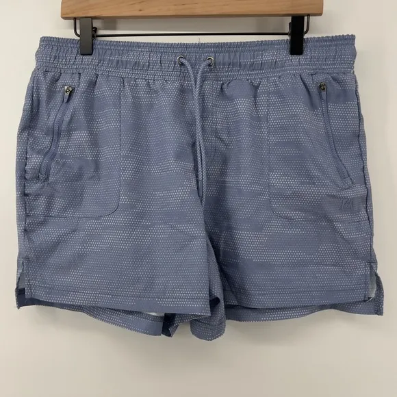 - Women's large - Blue grid camo design (almost like a blue periwinkle color) - 90% polyester, 10% spandex - In excellent pre-owned condition. No stains or holes These lightweight hiking shorts feature a 4" inseam. Two front zipped pockets to keep your items secure. Two rear pockets. Elastic waist with drawcord. Approximate flat measurements: Waist: 35" Inseam: 4" Front Rise: 11.5" Back Rise: 16.75" You will receive exact item pictured. From smoke free home. Ships from Orlando, Florida Keywords: hiking, walking, trail, walk, hike, lightweight, UPF, zipped pockets, elastic waist, adjustable, pockets