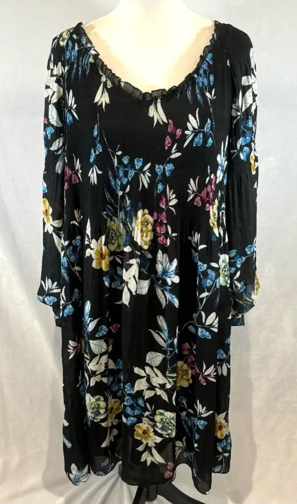 Avenue long sleeve black floral stretch pleated dress size 22/24 - $20 - From Upstyle