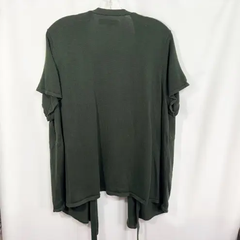 An open-front cardigan in a solid olive green hue. This plus-size cardigan features short sleeves an... Show more