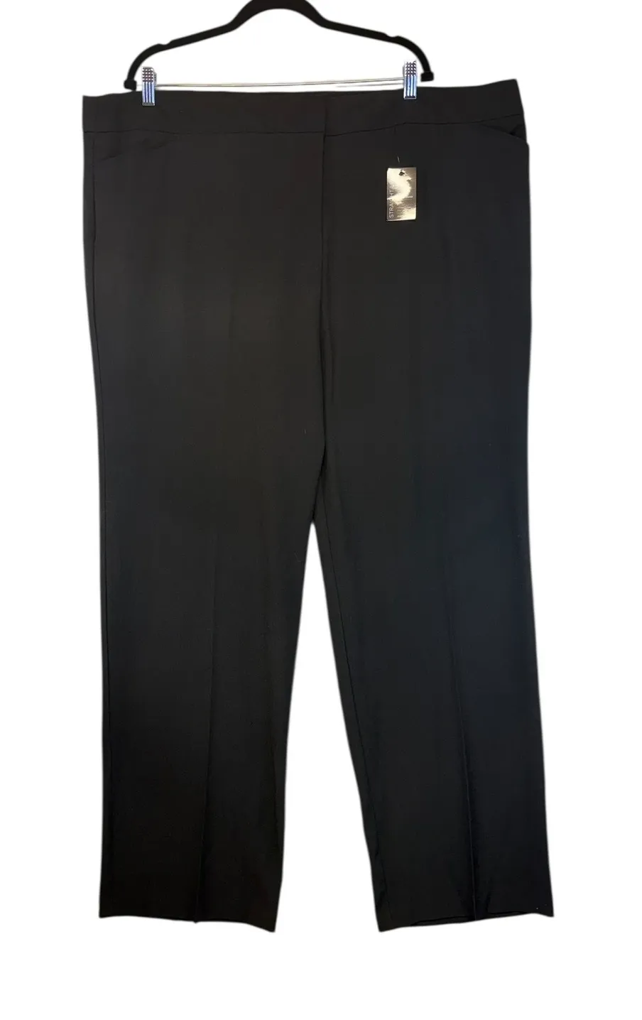 Discover sophisticated comfort with these Avenue black straight leg trousers. Designed for a flattering silhouette, these pants offer a polished look that transitions seamlessly from day to night. The cool hand fabric ensures you stay comfortable and chic, while the straight leg cut provides a timeless and versatile style. Perfect for the office, a casual brunch, or an evening out. Measurements: • Waist: 24 in • Inseam: 34 in • Leg Opening: 11 in Style: Dress Pants Department: Women Material: Polyester Blend Leg Style: Straight Type: Pants Fabric Type: Ponte Features: Pockets, Elastic Waist, Wrinkle Resistant, Lightweight, Easy Care Closure: Zip, Button Pattern: Solid Accents: Zipper Occasion: Workwear, Casual, Business Inseam: 31 in Waist Size: 26 Fit: Regular Keywords: Avenue, plus size, work pants, career attire, comfortable, tailored, professional, smart casual, everyday wear, classic, business casual, travel, versatile, dark wash