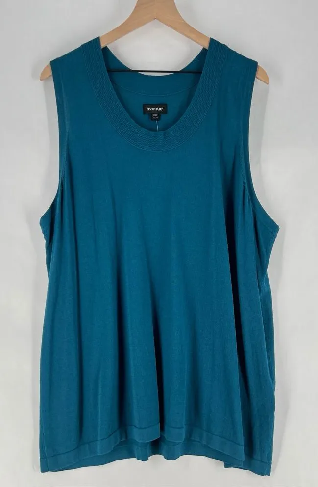 Avenue Womens Size 26/28 Teal Stretch Knit‎ Scoop Neck Sleeveless Swing Top Blue - $23 New With Tags - From Asia