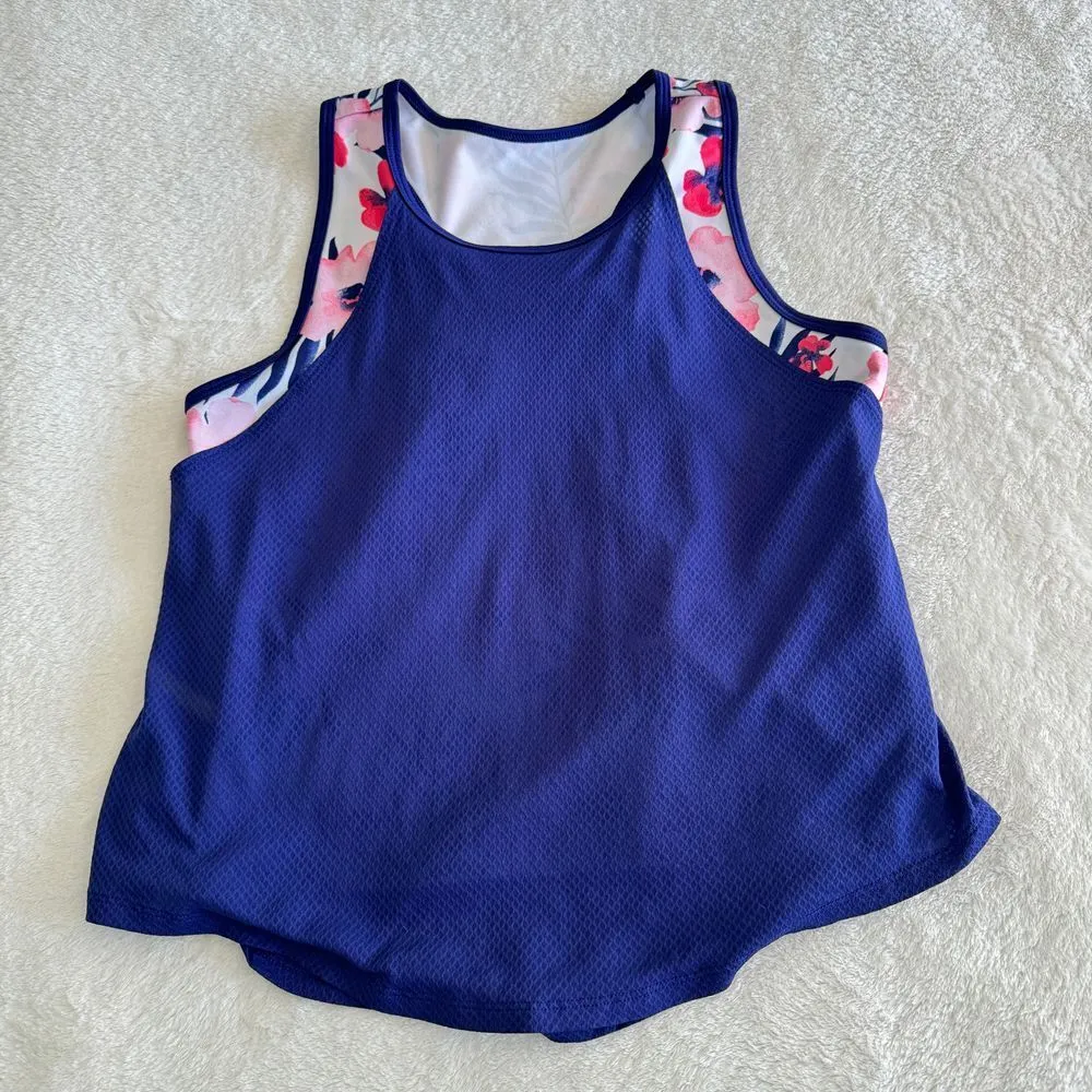 Avia Athletic 2Fer Tank Top Womens Size XXL Blue Pink Floral Mesh Racerback Workout **This tank is... Show more