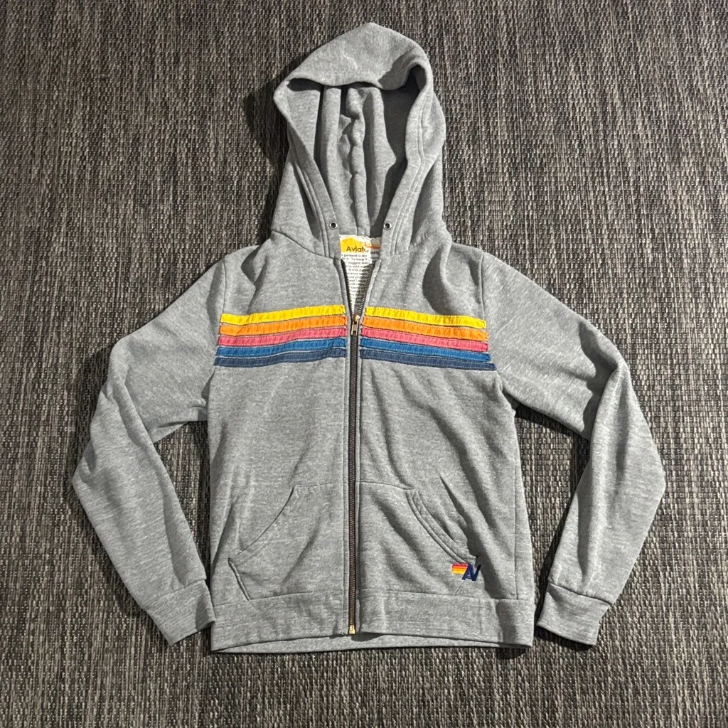 Flat measurements Pit to pit- 19” Length- 22” Material: 50% cotton, 37% polyester, 13% rayon Note: missing drawstrings in hood, minor wash wear throughout, and tear forming along front pockets as seen in images