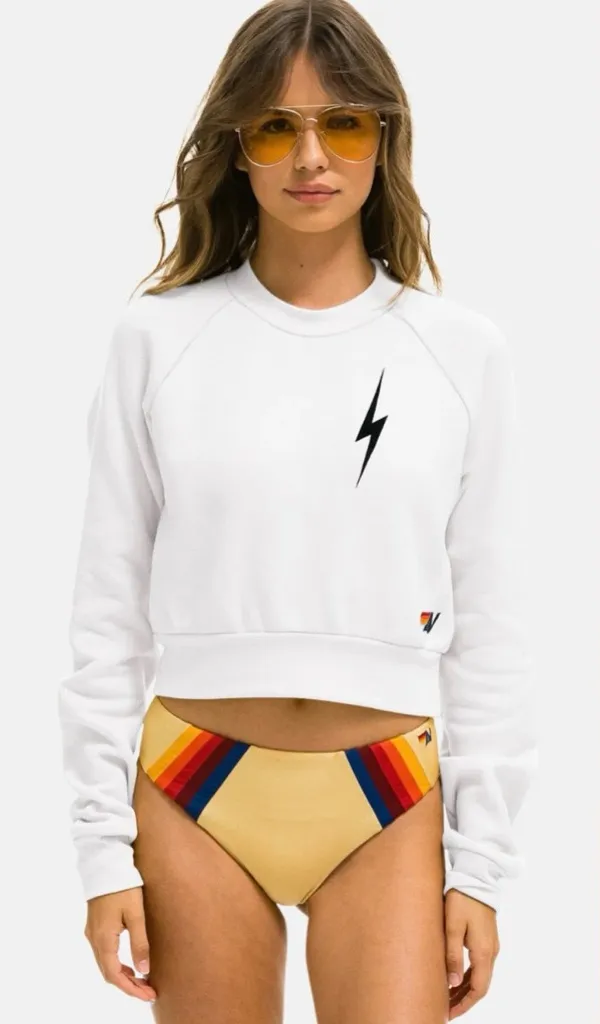 Aviator Nation Bolt 2 Cropped Sweatshirt White with Black Bolt Size S - $138 - From Lolas