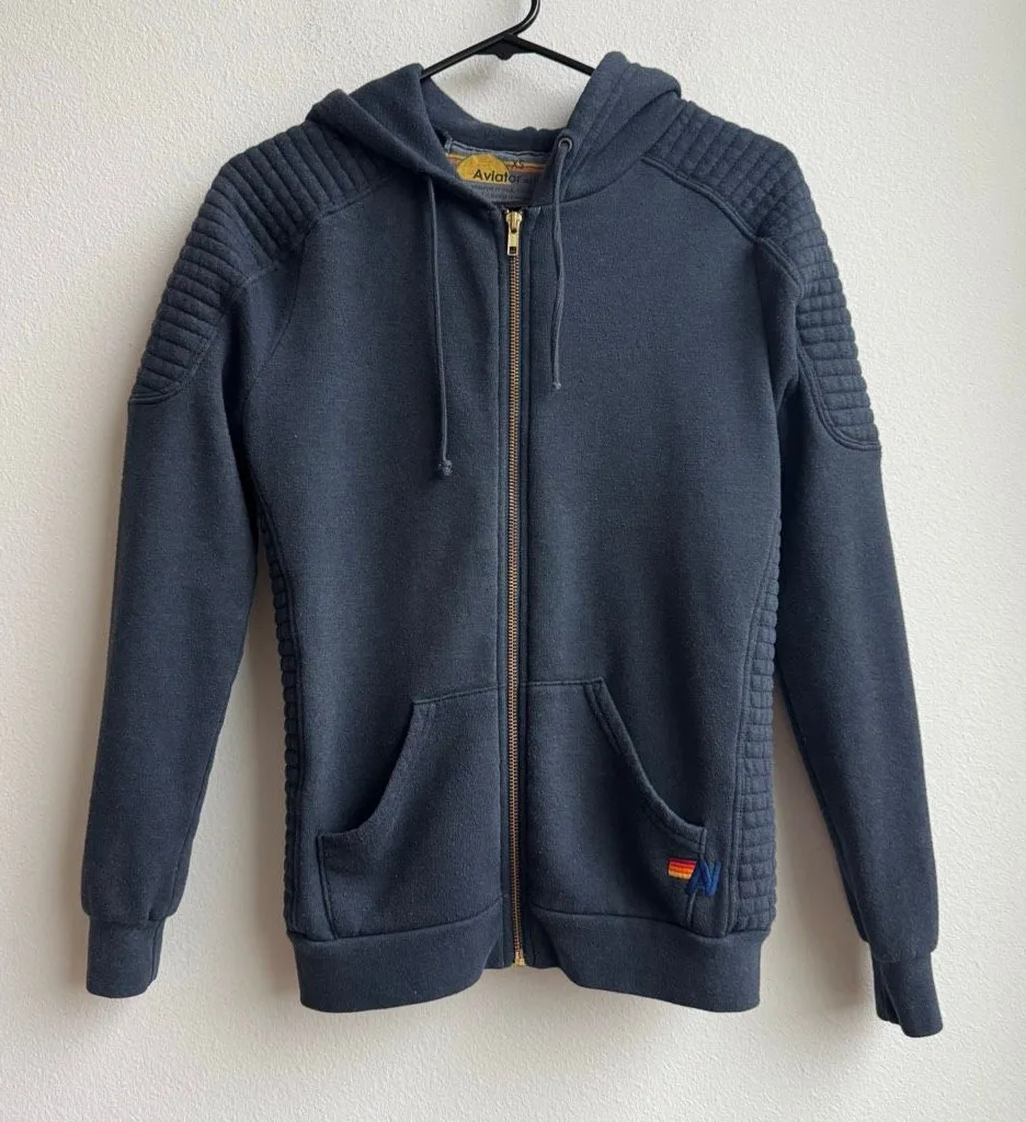 Aviator Nation Navy Blue Full Zip Up Quilted Moto Hoodie Women’s Size XS - $99 - From Olga