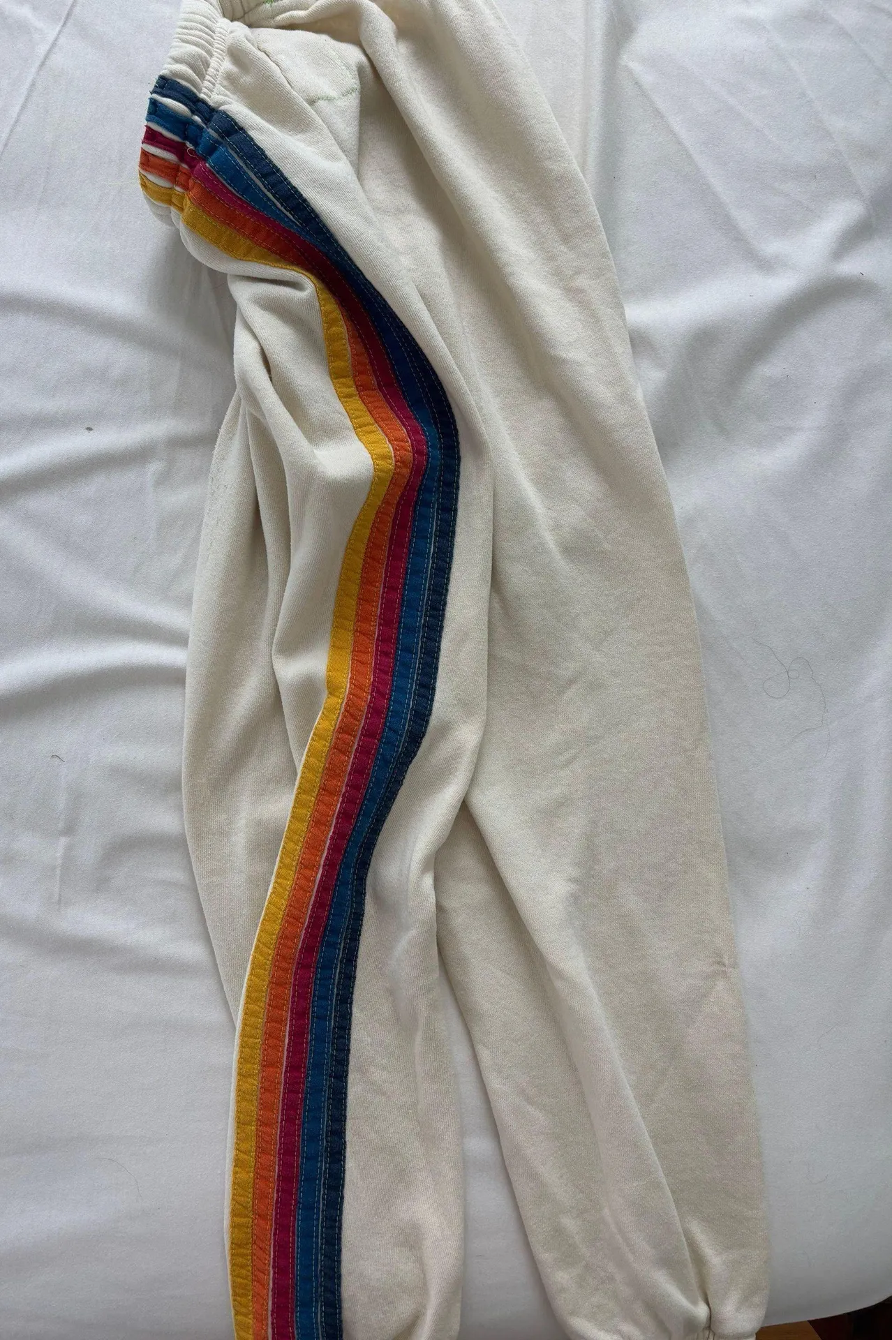 aviator nation sweatpants with the rainbow stripe in size medium! could probably fit size small too -good condition, worn a few times and slightly pilling, but no stains or holes