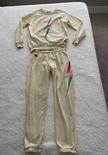 Amazing condition! Bought this for my mom and she said it’s too hip for her style so it’s basically brand new. Extremely comfortable, rare, and cute!!! Top is a size M and bottom are size L. Originally paid $400 for the set!