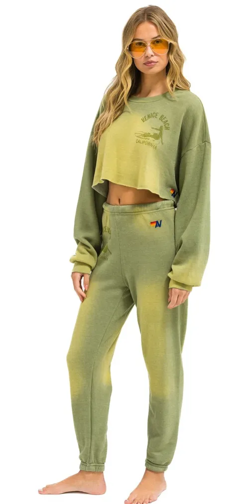Aviator nation cropped sweatshirt with Venice logo Matching sweatpants Cute sweatsuit Faded army g... Show more