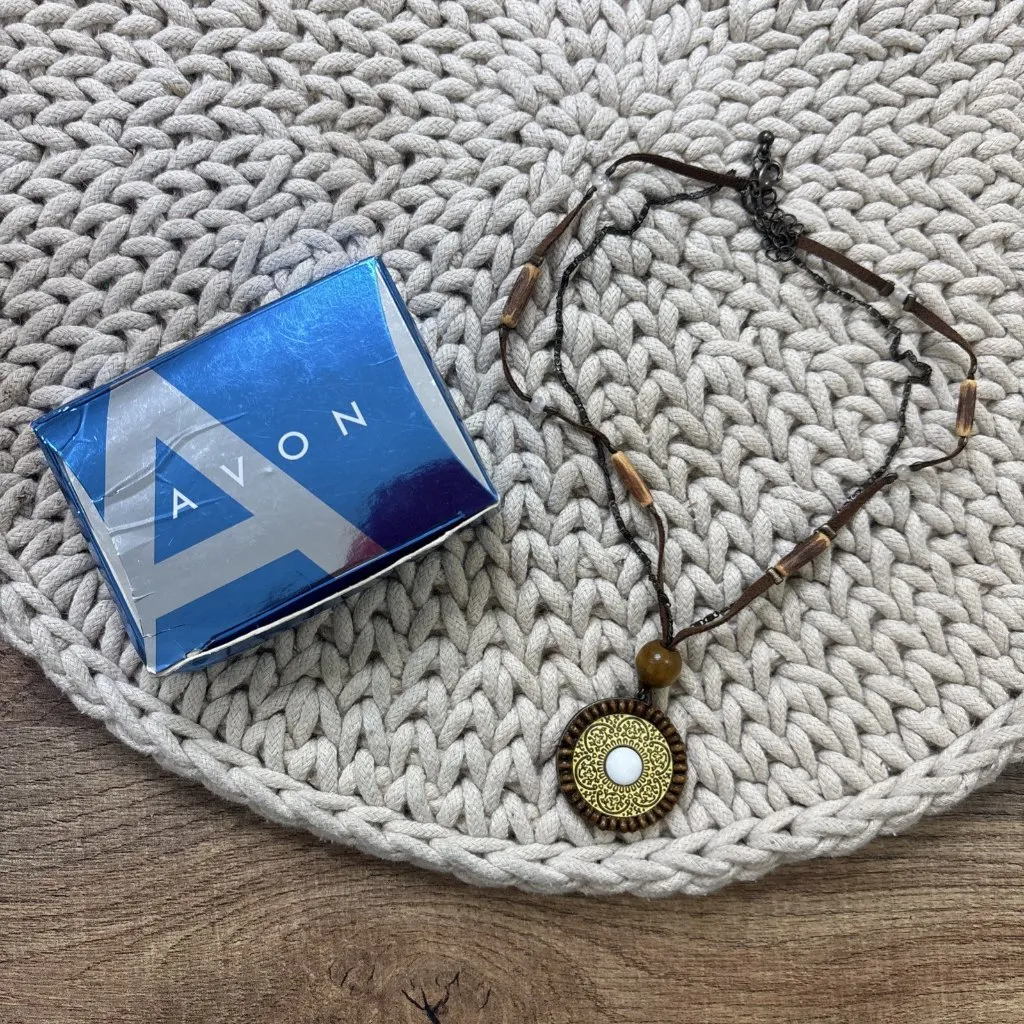 Avon Golden Disk Necklace with Wood & Mother Of Pearl Accents (2005) Comes with original box (box is... Show more