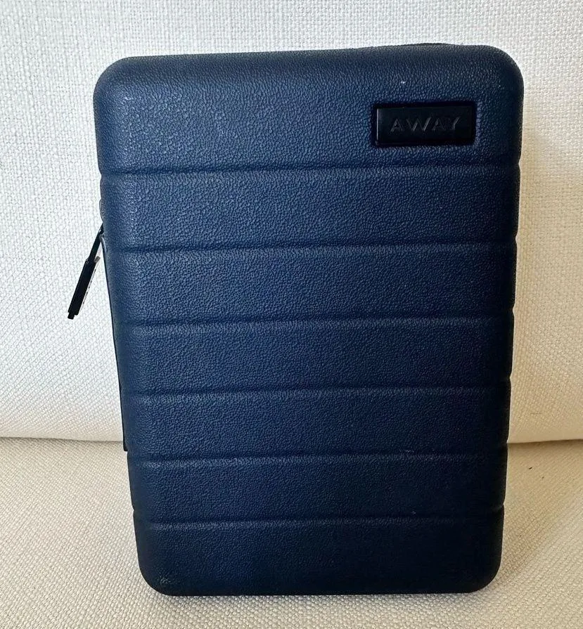 Away X United Airlines Mini Luggage Hard Shell Amenity case. Away X United Airlines Mini Luggage Hard Shell Amenity Kit Empty Travel Case Navy Blue in good pre-owned condition with some scratches and minor wear as pictured. This United Airlines Away Luggage Hard Shell Amenity Kit is the perfect addition to your collection. With its sleek design, it is sure to catch the eye of any aviation enthusiast. The kit is made by AWAY, a well-known brand in the travel industry, and was modified to fit all your travel needs Unisex The empty case can be used to store anything from toiletries to electronics, and the hard shell ensures that your belongings are protected during your travels. This amenity kit is a must-have for any United Airlines fan or collector.