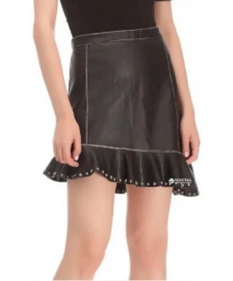 Zara Faux Women's Black Faux Leather Asymmetrical Skirt Small Ruffle Studded In excellent pre-owned... Show more