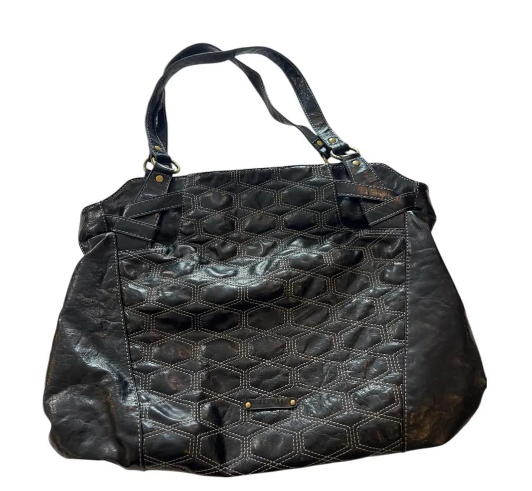 Classic black faux leather quilted tote bag from Axcess by Liz Claiborne featuring geometric stitchi... Show more