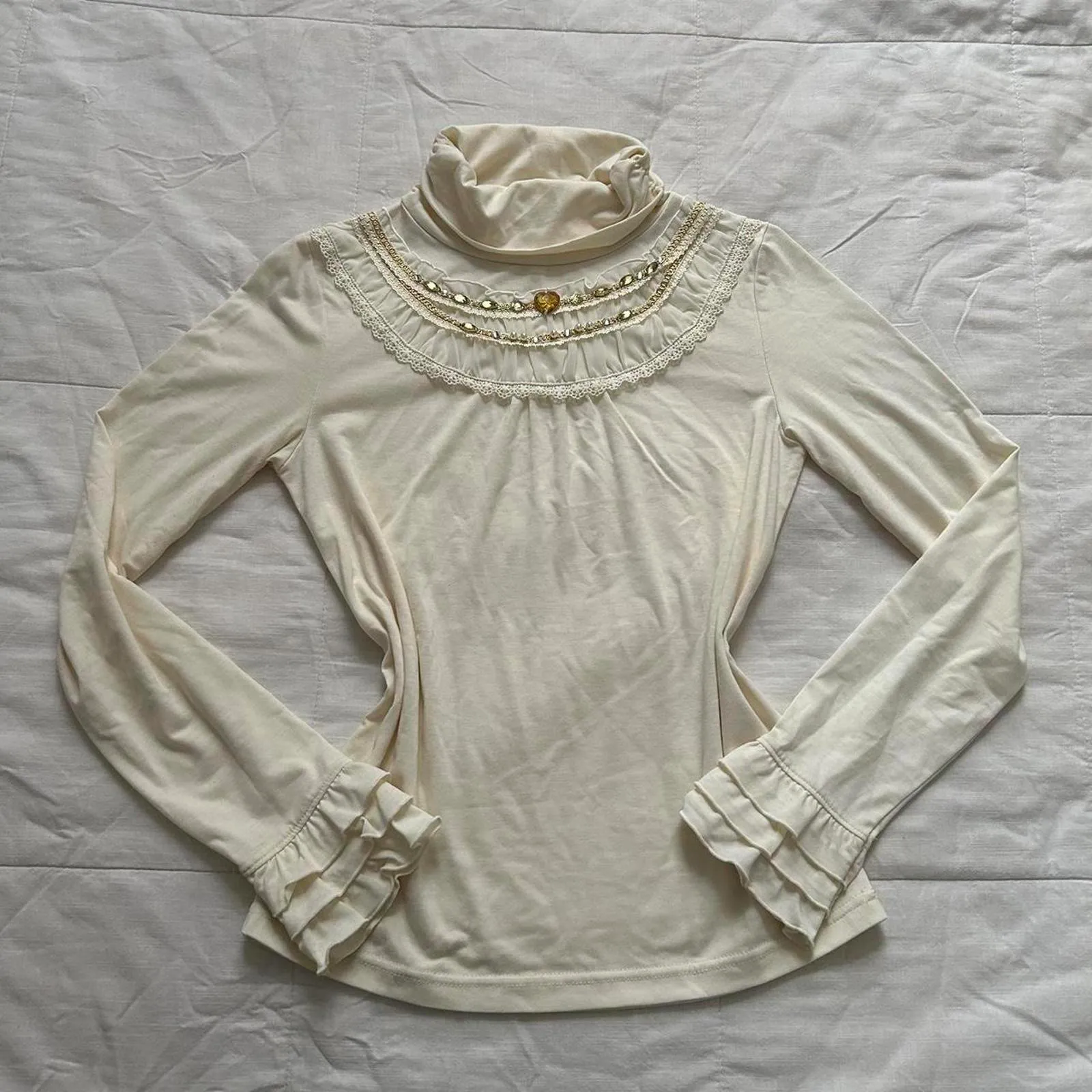Axes Femme Cream white long sleeve turtleneck top with pearl diamante neckline Size M - $50 - From Killah