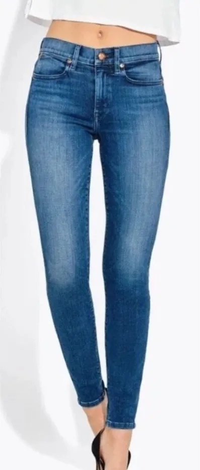 These are the popular "The Chiller" high-rise skinny jeans from AYR. They feature a classic five-pocket design with a zip fly and a flattering medium indigo wash with light whiskering. The fabric is a high-quality blend of 94% Cotton, 4% Polyester, and 2% Elastane for the perfect amount of stretch. Measurements (laying flat): • Waist: 14 inches • Rise: 9.5 inches • Inseam: 28 inches Excellent used condition with no visible flaws, stains, or tears. This item comes from a clean, smoke-free home.