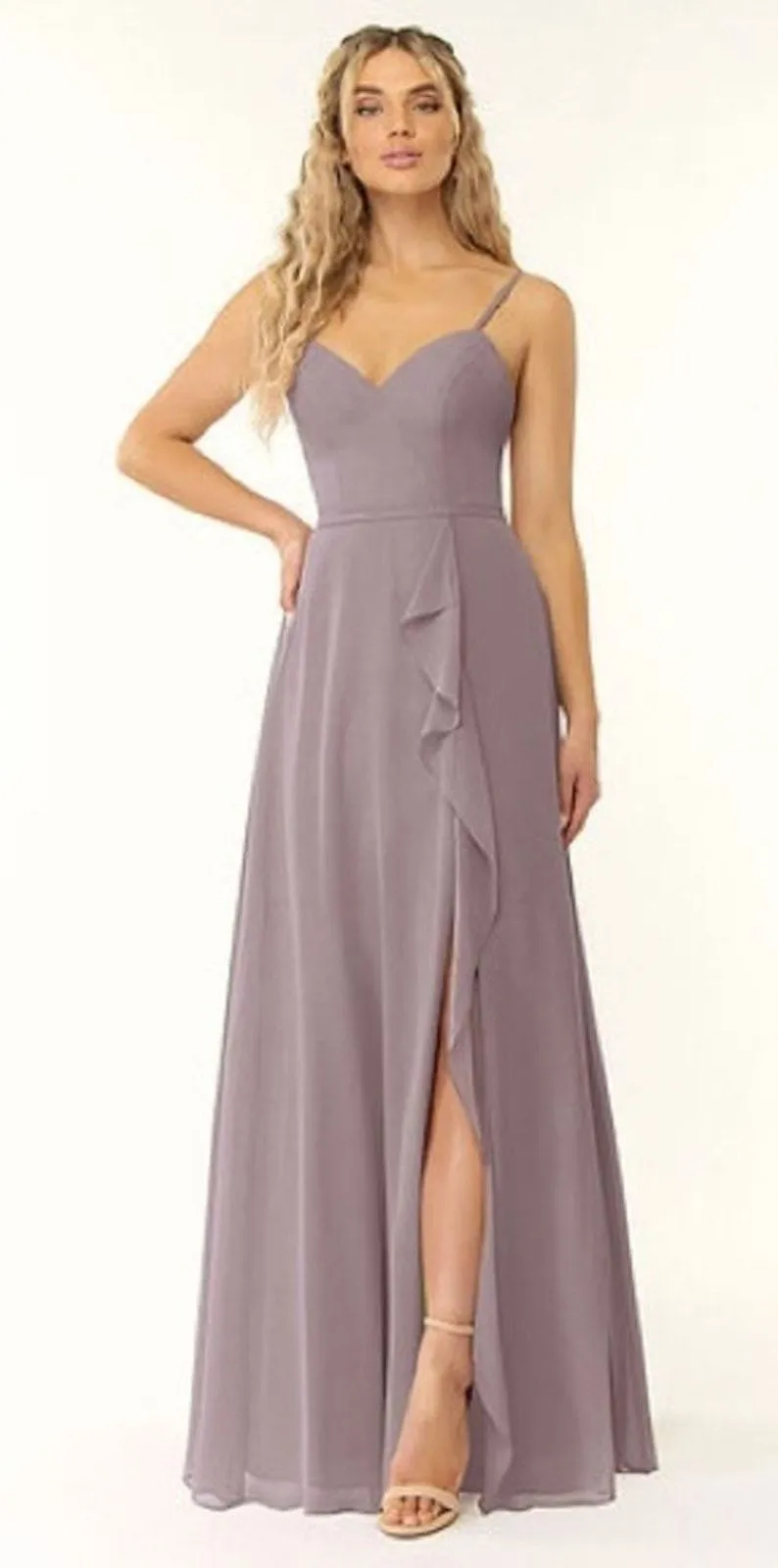 All orders ship next business day! Conditions: good used condition/No holes/No pilling/No fade Smoke free home! Please ask any questions! Thank you for Looking & Happy Shopping Details: • Brand: Azazie • Size: M • Style: Bridesmaid, Formal, Evening Gown, A-Line, Maxi • Dress length: Long • Color: Purple • Department: Women • Sleeve length: Sleeveless • Occasion: Wedding, Formal, Party/Cocktail • Material: Chiffon • Fabric type: Chiffon • Theme: Wedding, Bridesmaid, Formal • Neckline: V-Neck • Sleeve type: Strappy Sleeve • Closure: Zip • Accents: Ruffle, Layered • Features: Fully lined, Ruffle detail, Flowy Pit to Pit: 18" Waist: 16" Keywords: Azazie bridesmaid dress, dusty mauve dress, dusk purple gown, chiffon maxi dress, A-line formal dress, V-neck bridesmaid gown, spaghetti strap dress, ruffle chiffon dress, layered ruffle bodice, floor length evening gown, wedding guest dress, formal occasion dress, fully lined gown, back zipper dress, flowy chiffon skirt DRESS118