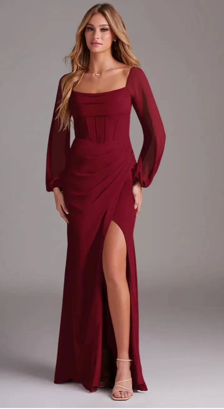 Dress is Azazie size 10, back zip closure with built in corset boning and bra pads. Dress was worn once for a few hours (cruise dinner lol) and haven’t worn since. Bottom was hemmed for my height (5’3”), so hollow to hem is ~57” long as shown in pic (originally ~60”).