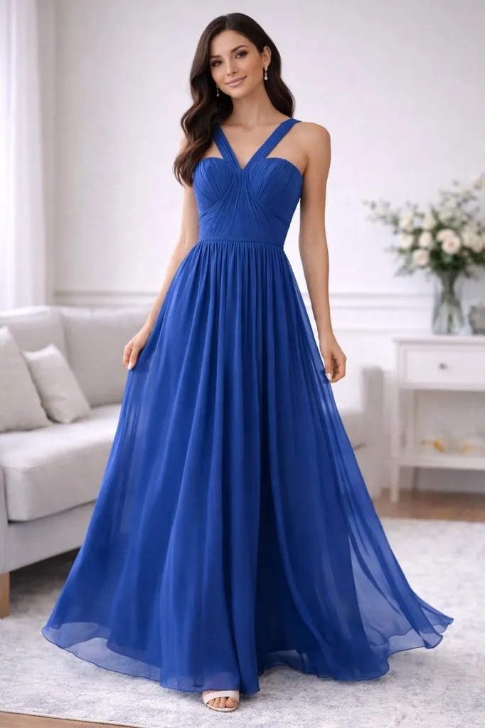 Azazie Dory Pleated Chiffon Dress – Royal Blue – Size A4 (US 4) 💙 Azazie Dory Pleated Chiffon Dres... Show more