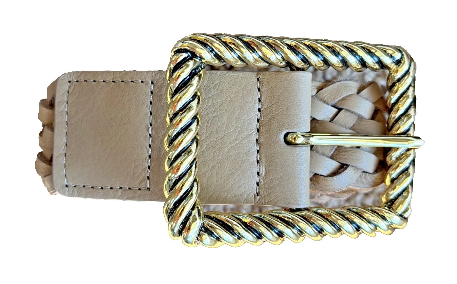B-LOW THE BELT Taupe/Gold Tone JANELLE Braided Leather Belt Womens Accessory S/M Brown - $120 - From Hilary