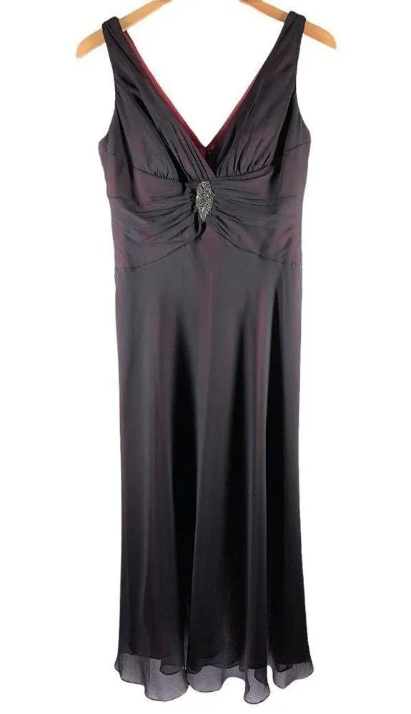 Jones Wear Black and Red Chiffon Gathered Beaded Evening Cocktail Dress Glamorous cocktail dress in... Show more