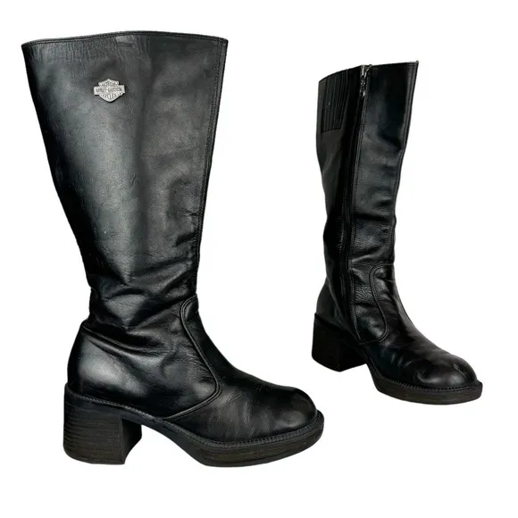 Harley Davidson Womens Boots Sz 7.5 Tall moto boots Pavement style Black Leather upper Chunky plat... Show more