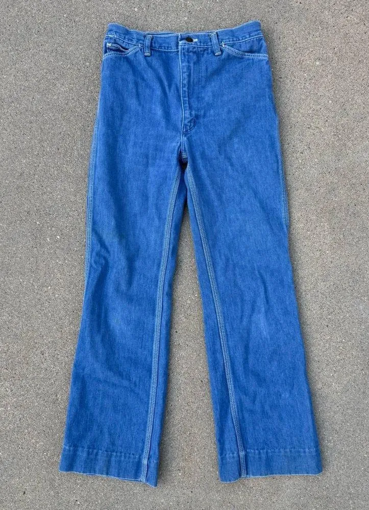 VTG 80s Wrangler Wrapid Transit Boot Leg Blue Jeans Sunset Southwestern Embroidery Pockets Made in U... Show more