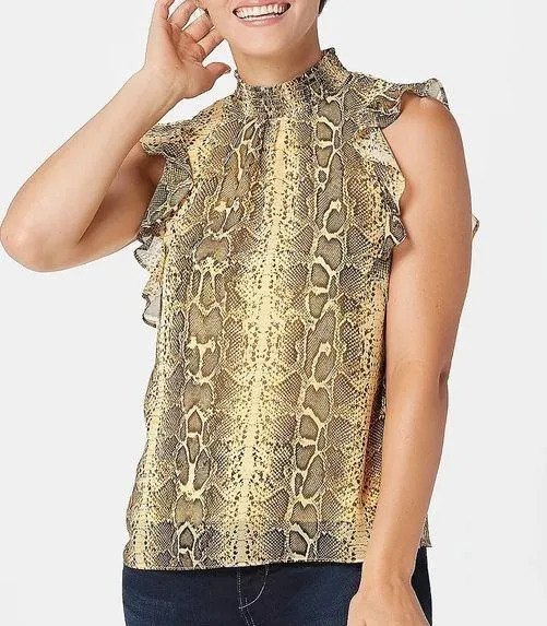 A smocked neckline, flutter sleeves, and a back keyhole cutout makes this printed blouse perfect for... Show more