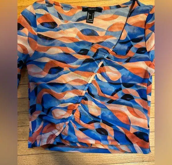 Forever 21 Long Sleeved Mesh Shirt, Ruching on Front, Slightly Cropped, Small - $15 - From Tracy