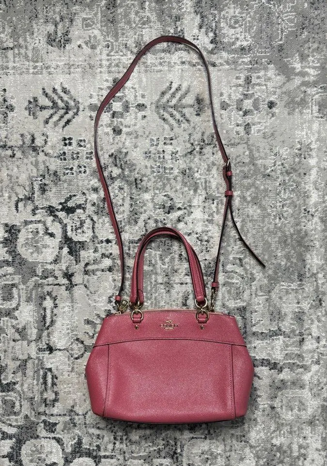 Coach Mini Brooke Carryall Satchel Pink Glitter Crossgrain Leather Gold Hardware Purse Shoulder... Show more