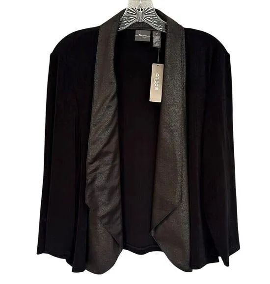 Chicos Travelers Faux Leather Mix Jacket Women's 12 Black 3/4 Sleeve Stretch NEW WITH TAGS. Such a g... Show more