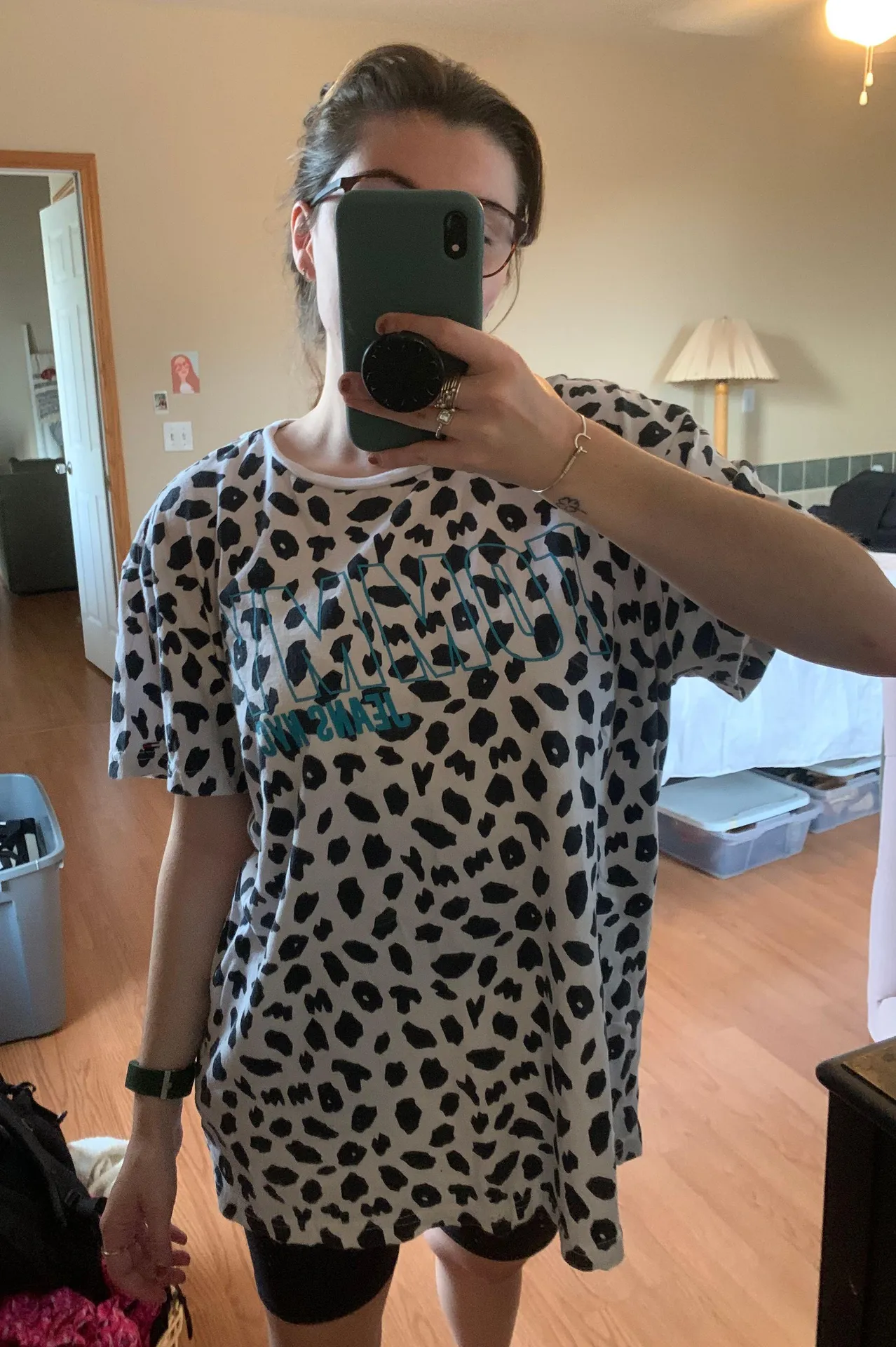 Vintage Tommy Hilfiger tee. Says “Tommy” in the cow print pattern too. Men’s large