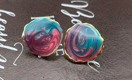 Vintage 1990s pastel pink purple green swirled painted gold tone costume stud earrings Retro enamel earrings Costume jewelry Estate earrings Goldtone studs Painted enamel Colors, hot pink, purple, greenish blue Pastel Retro Unique Obscure circle Colorful Multicolor 1990s Looking at more than one item? I offered generous bundle discount on two or more items. Choose from a large selection of handmade and vintage jewelry, accessories, clothing, and make yourself a unique, trendy, and one-of-a-kind outfit.