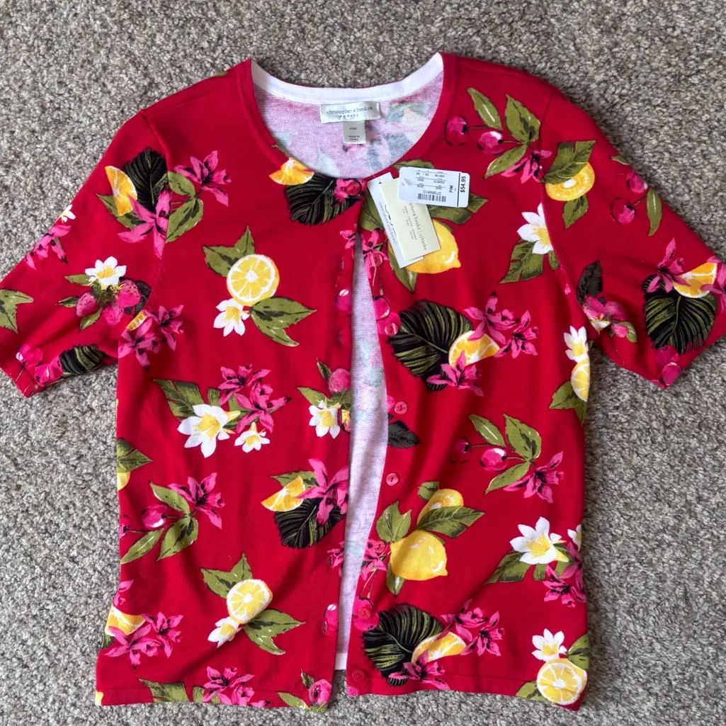 Christopher & Banks Red Floral Cardigan Size M - $18 New With Tags - From Rebecca