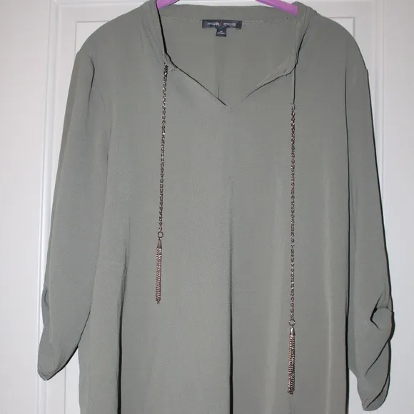 Great condition! Moa Moa olive green women’s shirt size medium. Silk-like material with gold chains ties - Open to offers - Any questions, please ask! I can provide measurements if needed - Smoke free/ pet free home - Ships same or next day