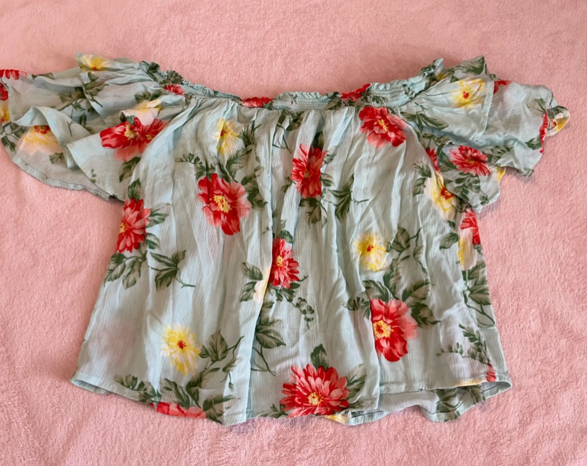 American Eagle Tropical Floral Print Off the Shoulder Top Rouched Detail to hold the top in place Si... Show more