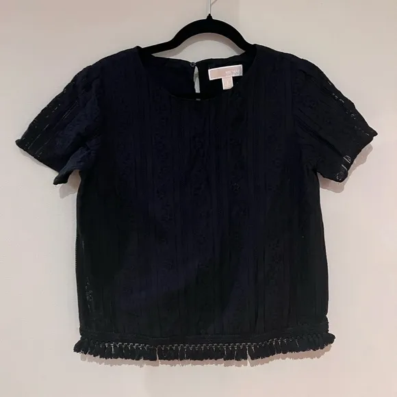-Michael Kors Black Basics Short Sleeve Lace Fringe Cotton Top -Worn a few times for work, no rips o... Show more