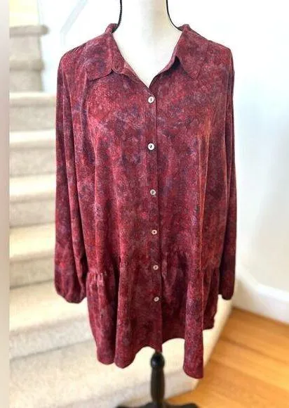 LOGO Lori Goldstein Red Abstract Print Ruffle Hem Blouse Size 2X - $35 - From Effies