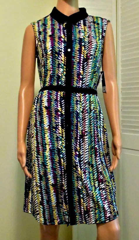 New with tags Liz Claiborne collared dress. Colorful print. Button up with black sash belt, cin... Show more